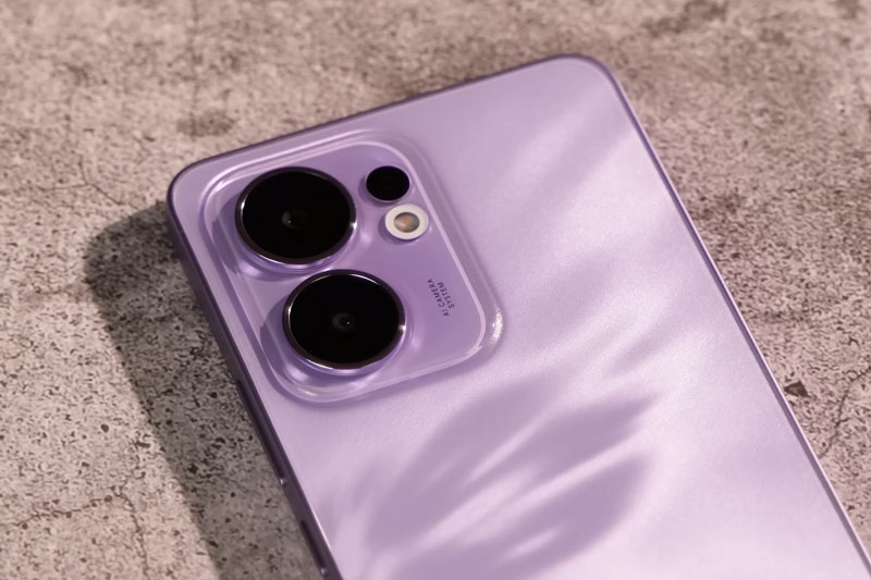 Hệ thống camera của Oppo Reno13 F gồm cảm biến chính 50MP với khẩu độ f/1.8 và chống rung quang học (OIS) giúp chụp ảnh rõ nét trong cả điều kiện thiếu sáng. Camera góc siêu rộng 8MP hỗ trợ chụp phong cảnh hoặc ảnh nhóm. Camera macro 2MP mang lại khả năng chụp cận cảnh với độ chi tiết cao.