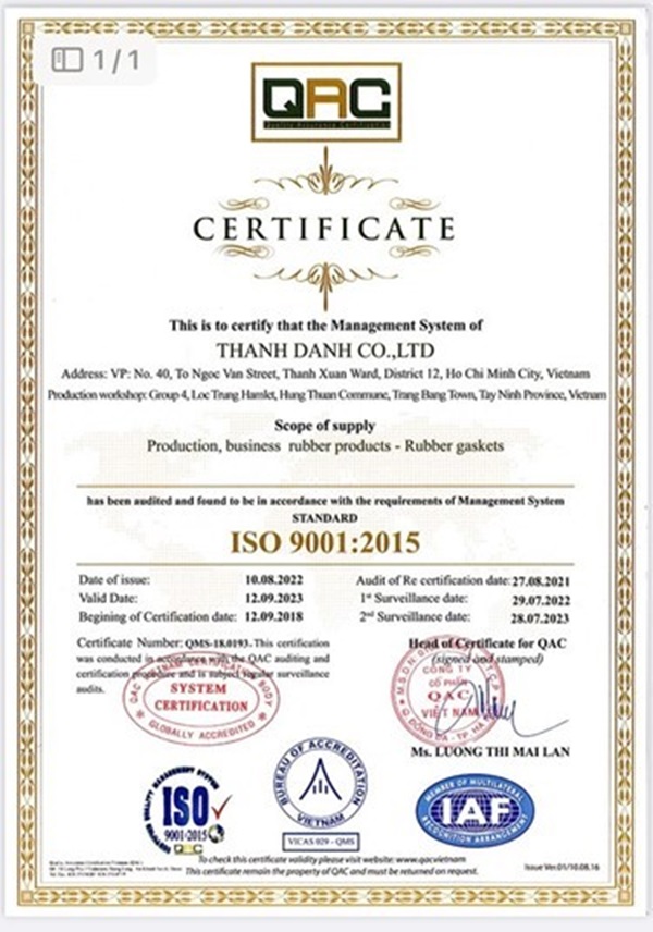 Nhờ sự năng nổ nghiên cứu và liên tục cải tiến chất lượng, hiện nay, các sản phẩm cao su kỹ thuật sử dụng nguyên liệu: EPDM, neoprene, NBR PVC, FKM. Silicon của Công ty TNHH SX-TM Thành Danh luôn đảm bảo chất lượng, an toàn, mẫu mã đa dạng, giá cả cạnh tranh, được khách hàng cả nước đón nhận, ủng hộ.