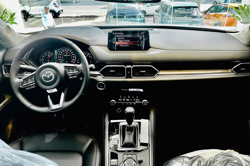 Bên trong khoang cabin, Mazda CX-5 tuy giữ nguyên bố cục nội thất cũ nhưng lại được hoàn thiện chỉn chu hơn với các chi tiết ốp gỗ, mạ chrome sáng bóng, tạo cảm giác sang trọng vượt tầm phân khúc. Vô-lăng 3 chấu bọc da có tích hợp các nút điều khiển tiện lợi và được viền chrome tinh tế. Phía sau là màn hình màu mới, cho trải nghiệm hiển thị hiện đại hơn. Tất cả các ghế trên xe đều được bọc da, trong đó ghế lái chỉnh điện đa hướng, còn hàng ghế sau có thể gập tỷ lệ 4:2:4 để tăng không gian chứa đồ khi cần.