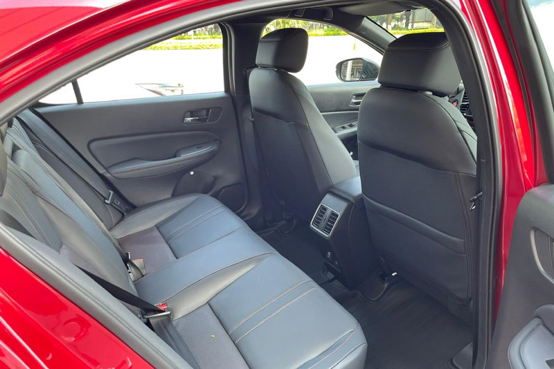 Nội thất ghế bọc da đen cùng đường viền chỉ đỏ (RS) tương phản như một điểm chấm phá hấp dẫn thị giác, góp phần tôn lên sự mạnh mẽ và phóng khoáng cho chủ nhân. Nhằm mang lại sự tiện nghi tối đa cho khách hàng, Honda City mới tích hợp thêm nhiều tính năng tiện nghi hàng đầu phân khúc như hệ thống âm thanh 8 loa cho âm thanh trung thực (RS, L). lẫy chuyển số thể thao (RS, L), chức năng khởi động xe từ xa (RS, L).Đồng thời, Honda City RS cũng có Honda Connect bao gồm 1 thiết bị được gắn trong xe, theo dõi toàn bộ các dữ liệu của xe, cho phép ghi nhận, lưu trữ và truyền tải thông tin thông qua sóng di động.