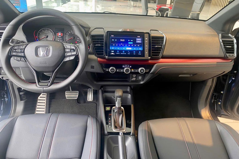 Nội thất ghế bọc da đen cùng đường viền chỉ đỏ (RS) tương phản như một điểm chấm phá hấp dẫn thị giác, góp phần tôn lên sự mạnh mẽ và phóng khoáng cho chủ nhân. Nhằm mang lại sự tiện nghi tối đa cho khách hàng, Honda City mới tích hợp thêm nhiều tính năng tiện nghi hàng đầu phân khúc như hệ thống âm thanh 8 loa cho âm thanh trung thực (RS, L), lẫy chuyển số thể thao (RS, L), chức năng khởi động xe từ xa (RS, L).