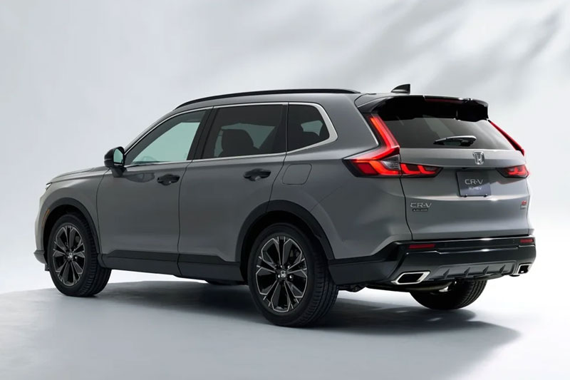 Về ngoại hình, Honda CR-V e:HEV RS Black Edition sở hữu diện mạo đậm chất cao cấp với màu sơn mới Slate Gray Pearl cùng các chi tiết đen bóng toàn thân như tay nắm cửa, cản trước - sau, viền hông, thanh ray nóc và vòm bánh xe. Phần đầu xe gây ấn tượng với lưới tản nhiệt thiết kế mới, cụm đèn pha và đèn hậu Smoke Chrome sắc sảo hơn, cùng logo Black Edition nổi bật trên nắp ca-pô.