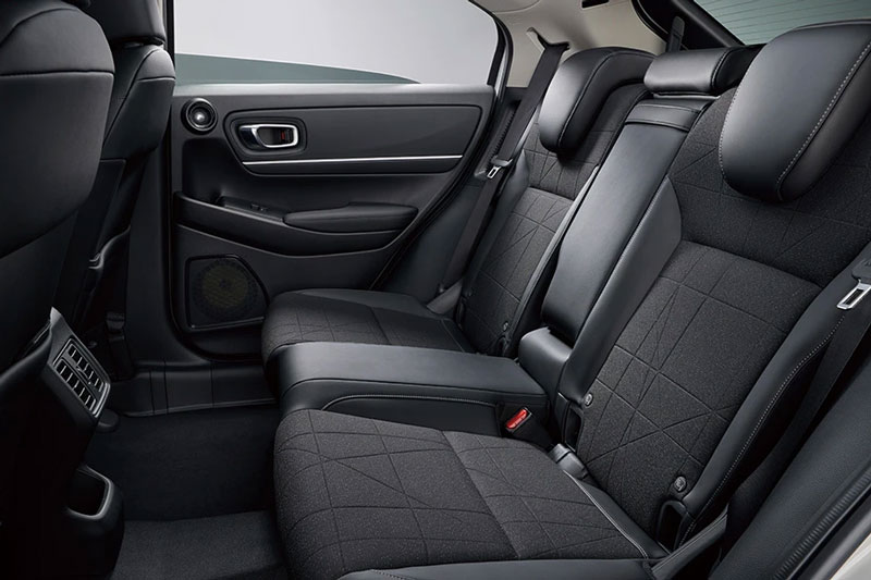 Không gian nội thất của Honda Vezel e:HEV RS 2026 mang đậm chất thể thao và cao cấp. Cabin sử dụng tông màu đen chủ đạo, ghế ngồi bọc da lộn Lux Suede với chỉ khâu đỏ nổi bật, giúp tăng độ bám và nâng đỡ cơ thể khi vào cua. Sắc đỏ cũng được nhấn mạnh ở vô-lăng, cần số, trần xe và bảng điều khiển trung tâm, mang đến cảm giác năng động đặc trưng của dòng RS.