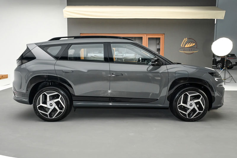 Thân xe được thiết kế tinh tế với phần đầu ngắn, trục cơ sở dài và bộ mâm 20 inch mạnh mẽ. Kích thước tổng thể của Hyundai Elexio EO 2026 lần lượt là 4.615x1.875x1.675 mm, chiều dài cơ sở 2.750 mm, mang lại không gian rộng rãi và ổn định khi vận hành.