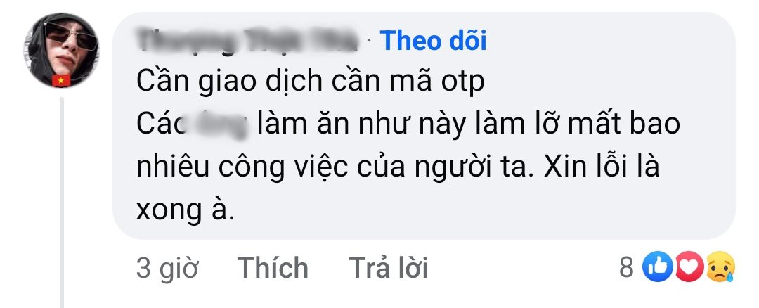 Một số người cho biết còn bị ảnh hưởng công việc do giao dịch cần mã OTP nhưng mạng bị sự cố đã không thể nhận được mã: