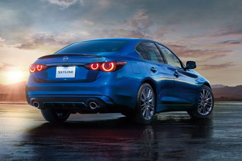 Bên cạnh nâng cấp kỹ thuật, Nissan cũng bổ sung tùy chọn màu sơn đặc biệt Wangan Blue mới - sắc xanh biểu trưng cho tốc độ và di sản thể thao của Skyline. Hệ thống phanh khẩn cấp tự động (AEB) trên xe được cải thiện khả năng nhận diện vật cản và người đi bộ, đáp ứng các quy định an toàn mới nhất tại Nhật Bản.