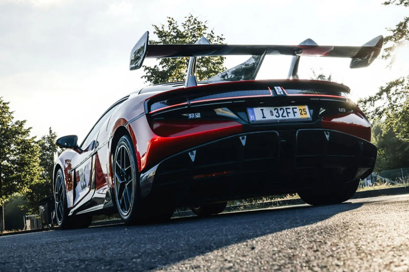 Bộ mâm hợp kim 20 inch thiết kế 5 chấu kép đi kèm lốp bán trơn GitiSport e·Gtr2 Pro, được phát triển hợp tác cùng Giti, giúp xe đạt tốc độ gần 500 km/h. Hệ thống phanh sử dụng kẹp phanh titan kết hợp đĩa gốm carbon nâng cấp, đảm bảo hiệu suất hãm tốc tối ưu.