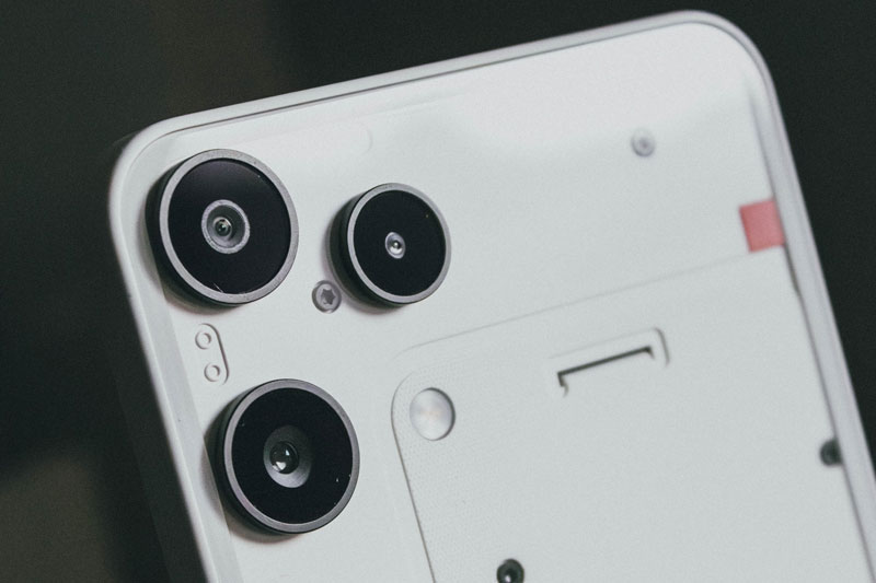 Về camera, Nothing Phone 3a Lite sở hữu cụm ba ống kính sau, gồm camera chính 50MP sử dụng cảm biến Samsung kích thước 1/1.57 inch, khẩu độ f/1.88 hỗ trợ EIS, camera góc siêu rộng 8MP f/2.2, và camera macro 2MP f/2.4. Máy có thể quay video 4K ở 30 khung hình/giây và hỗ trợ zoom kỹ thuật số 10x. Camera trước 16MP f/2.45 cho phép quay video 1080p 60fps, đáp ứng tốt nhu cầu selfie và video call.