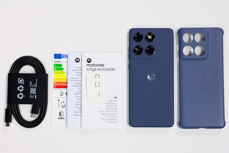 Kích thước của Motorola Edge 60 Fusion lần lượt là 161,2 x 73,08 x 8,25 mm, trọng lượng 180,1g. Cảm biến vân tay quang học tích hợp bên trong màn hình. Đáng tiếc là máy không có jack cắm tai nghe 3,5 mm.