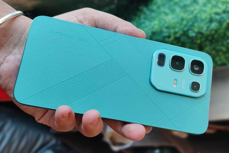 Về thiết kế, Infinix Note 50X 5G Plus cũng không hề đơn điệu. Bản màu Xanh biển được phủ lớp da thuần chay mềm mịn cho cảm giác cầm nắm sang – xịn – mịn. Trong khi đó, hai màu Xám Titan và Tím Enchanted lại mang vẻ ngoài hoàn thiện kim loại chắc chắn, nhìn “xịn sò” không kém máy flagship.