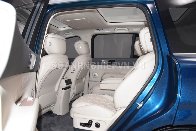 Cấu hình ghế 2+2+2 mang lại sự linh hoạt tối ưu. Hàng ghế thứ hai là ghế rời có thể trượt, có bàn mini, chỗ để chân thoải mái, màn hình giải trí 17,3 inch và cửa sổ trời toàn cảnh cực chill. Các bề mặt như ghế và cửa đều được may hình quả trám sang trọng, trong khi nút mở cửa cũng được điện tử hóa để tăng độ “xịn sò”.