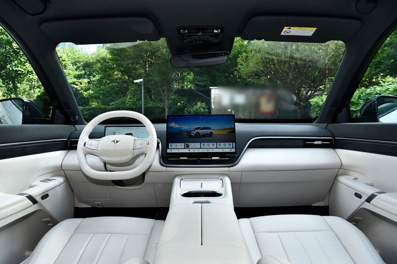 Khoang cabin của Dongfeng eπ 008 2026 tiếp tục được nâng cấp mạnh mẽ cả về thẩm mỹ lẫn tiện nghi. Người dùng có thể lựa chọn các tông màu nội thất gồm đen Interstellar, trắng Warm Mountain Jade và nâu Morning Light. Trung tâm bảng điều khiển là màn hình nổi 15,6 inch độ phân giải cao kết hợp cùng bảng đồng hồ kỹ thuật số 10,25 inch, tất cả được điều khiển bởi chip xử lý 8295P mạnh mẽ, đảm bảo khả năng phản hồi nhanh và vận hành mượt mà.