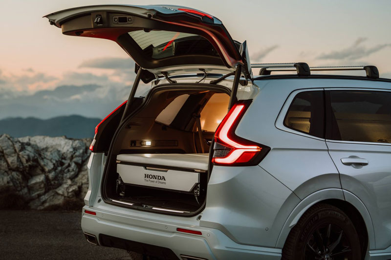 Honda CR-V Dream Pod được phát triển từ phiên bản CR-V e:PHEV – mẫu hybrid sạc ngoài đang hot với động cơ xăng 2.0L kết hợp pin 17,7 kWh và mô-tơ điện, cho tổng công suất 184 mã lực, mô-men xoắn 335 Nm và phạm vi di chuyển thuần điện tới 79 km – quá ổn cho một chuyến cắm trại gần thành phố.