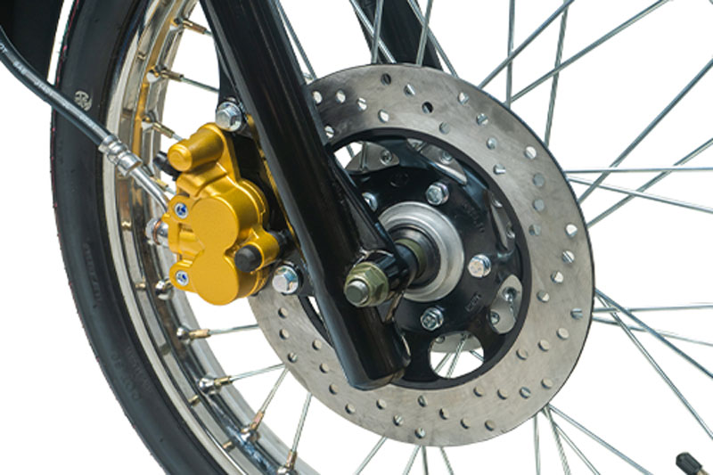 Duke 110 2025 sử dụng bánh trước/sau với kích cỡ lần lượt 70/90-17 và 80/900-17, kết hợp bộ vành nan hoa truyền thống. Hệ thống phanh gồm phanh đĩa trước và phanh tang trống sau, vừa đảm bảo an toàn vừa giữ được phong cách cổ điển quen thuộc. Hệ thống treo phía trước là phuộc thủy lực, phía sau là giảm xóc lò xo đôi, đủ để xử lý các cung đường đô thị và cả đoạn hơi gồ ghề mà không lo cứng nhắc.