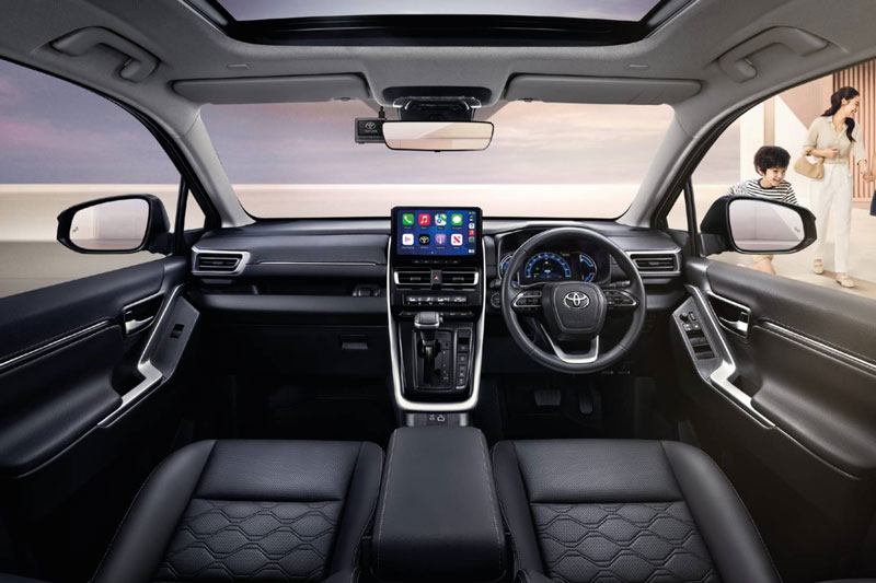 Bên trong, nội thất hiện đại với ghế lái chỉnh điện 8 hướng, hàng ghế thứ 2 dạng Captain Seat kèm bệ đỡ chân (bản cao cấp), hàng ghế thứ 3 gập 50:50. Xe trang bị màn hình kỹ thuật số TFT 7 inch, màn hình cảm ứng trung tâm 10,1 inch hỗ trợ Android Auto/Apple CarPlay không dây, camera 360 độ, sạc không dây, điều hòa tự động kèm dàn lạnh cho hàng ghế sau. Ngoài ra, còn có phanh tay điện tử EPB, Auto Hold, đèn viền nội thất cùng nhiều tiện nghi cao cấp khác.
