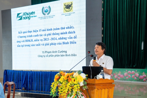 Chia sẻ giải pháp nâng cao năng suất và chất lượng cà phê Ea H’Leo, thích ứng với biến đổi khí hậu, ông Phạm Anh Cường - Phòng nghiên cứu phát triển Công ty Cổ phần phân bón Bình Điền cho biết, doanh nghiệp chú trọng nâng cao nhận thức nông dân trong vấn đề áp dụng khoa học kỹ thuật vào canh tác sử dụng phân bón một cách thông minh. Tiếp tục có nhiều nghiên cứu để hoàn thiện quy trình phù hợp với tập quán canh tác của người dân. Đưa ra các loại phân bón NPK chuyên dùng cho từng loại cây, thích ứng với biến đổi khí hậu, giá cả hợp lý phù hợp với điều kiện của người dân tại địa phương…