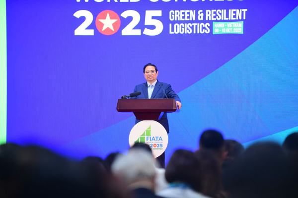 Chiều ngày 8/10 tại Hà Nội, Thủ tướng Chính phủ Phạm Minh Chính tới dự và phát biểu tại Đại hội Thế giới Liên đoàn quốc tế Các hiệp hội Giao nhận và Vận tải (FIATA World Congress 2025). Sự kiện do Hiệp hội Doanh nghiệp Dịch vụ Logistics Việt Nam (VLA) đăng cai, phối hợp cùng FIATA và các đối tác quốc tế tổ chức. Đây là sự kiện thường niên lớn nhất của ngành logistics toàn cầu, lần đầu tiên được tổ chức tại Việt Nam, đánh dấu bước tiến quan trọng trong hành trình hội nhập sâu rộng của ngành logistics Việt Nam với thế giới.