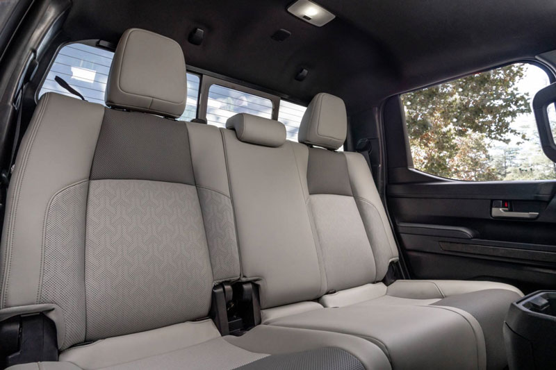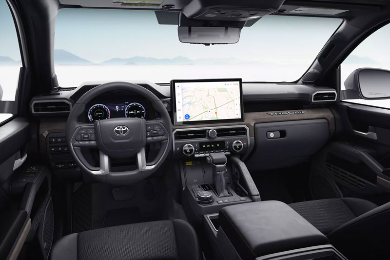 Bên trong khoang nội thất, Toyota Tacoma Limited mang đến không gian sang trọng với ghế bọc da SoftTex cao cấp có đường chỉ khâu tương phản, ghế trước tích hợp tính năng sưởi và thông gió. Trung tâm bảng táp-lô là màn hình cảm ứng 14 inch hỗ trợ kết nối Apple CarPlay và Android Auto không dây, cùng hệ thống sạc không dây Qi công suất cao.