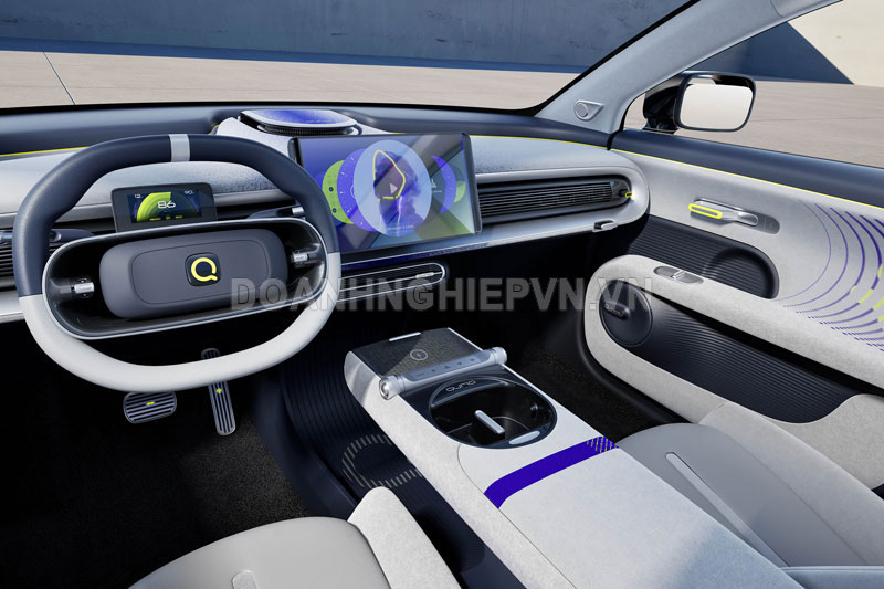 Không chỉ độc đáo bên ngoài, nội thất bên trong của Chery QQ cũng được chăm chút với phong cách đậm chất cyberpunk: phối hai màu độc đáo, điểm xuyết bởi nhiều hoạ tiết trẻ trung. Điểm sáng lớn nhất là màn hình điều khiển trung tâm 15,6 inch siêu to khổng lồ, kết hợp cùng chip xử lý AI 128TOPS, mang đến hiệu suất vận hành mượt mà.
