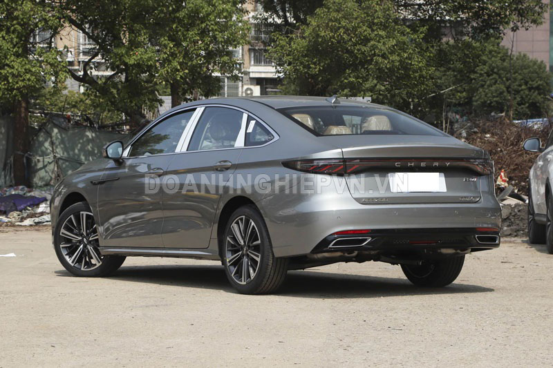 Kích thước tổng thể của Chery Arrizo 8 Pro 2025lần lượt là 4.780 x 1.843 x 1.469mm, chiều dài cơ sở 2.790mm. Thiết kế thân xe thu hút với bộ mâm đa chấu hai tông màu kết hợp đường viền hướng lên trên, tạo cảm giác năng động. Phía sau, đèn hậu LED dạng xuyên thấu, hay còn gọi là “đèn hậu đuổi theo ánh sáng”, giúp tổng thể xe trở nên hiện đại hơn. Đặc biệt, cụm ống xả kép mạ chrome hai bên mang đến vẻ mạnh mẽ, đậm chất thể thao.