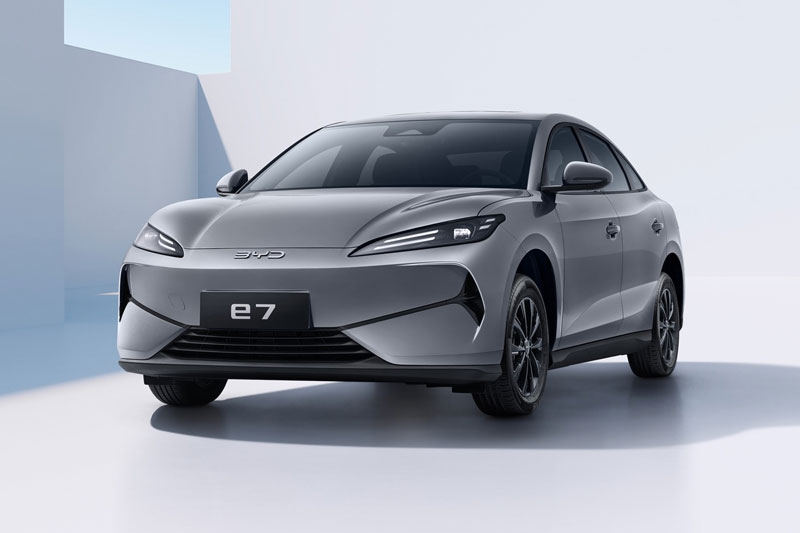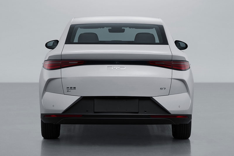 Về kích thước, e7 được định vị là sedan cỡ trung, với chiều dài x rộng x cao lần lượt là 4.780 x 1.900 x 1.515 mm, cùng chiều dài cơ sở lên đến 2.820 mm, đủ để mang lại không gian nội thất rộng rãi. Mẫu xe này sử dụng bộ vành 16 inch đơn giản, phù hợp với mục tiêu tiết kiệm chi phí sản xuất.