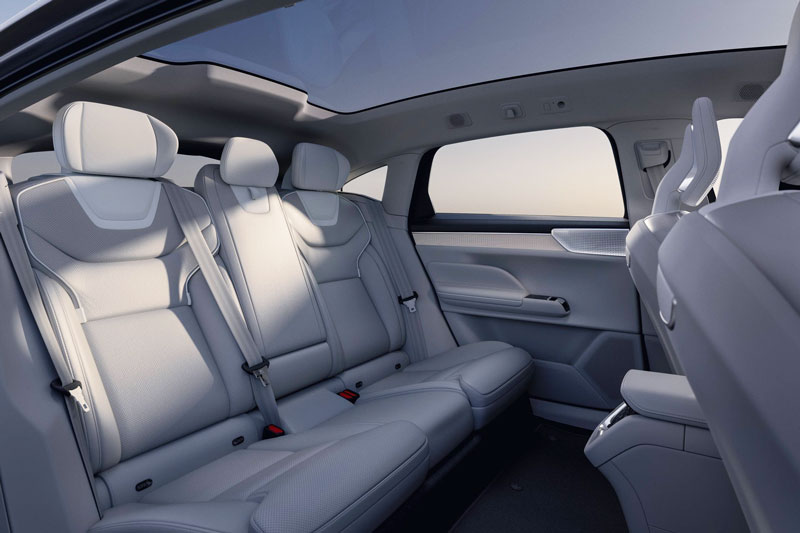Khoang nội thất của ES90 thể hiện rõ triết lý Scandinavian Luxury đặc trưng của Volvo với ghế ngồi bọc da Nappa cao cấp có chức năng sưởi, thông gió và massage cho cả hàng ghế trước và sau. Hàng ghế sau có thể ngả điện, đi kèm tựa tay trung tâm cỡ lớn, trong khi cột lái chỉnh điện, đèn viền nội thất, và cửa sổ trời điện tử mang lại cảm giác sang trọng đẳng cấp. Đặc biệt, cửa sổ trời có thể chuyển từ trong suốt sang mờ đục chỉ bằng một nút bấm, thay thế hoàn toàn tấm che nắng truyền thống.