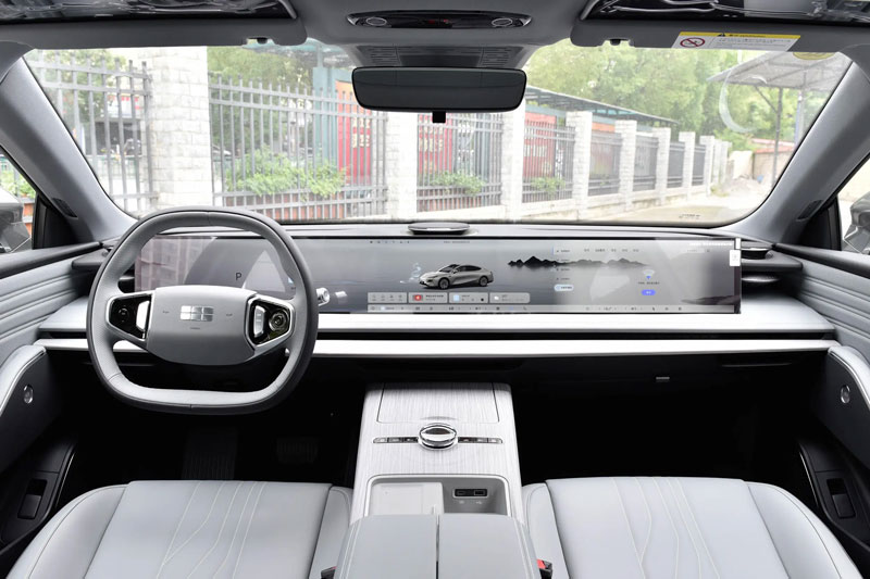 Không gian nội thất của Geely Galaxy E8 được đánh giá là nổi bật trong phân khúc nhờ sự kết hợp giữa công nghệ tiên tiến và tính tiện nghi cao cấp. Điểm nhấn lớn nhất nằm ở màn hình liền mạch kích thước 45 inch, độ phân giải 8K, đi kèm chipset Qualcomm Snapdragon 8295.