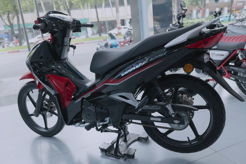 Một điểm cộng siêu to khổng lồ của Honda Wave 125i Malaysia là trang bị phanh đĩa trên cả hai bánh – điều mà Future 125 FI lẫn bản Wave 125i Thái vẫn chưa làm được khi chỉ dùng phanh đùm phía sau. Cặp giảm xóc sau trên mẫu xe này cũng được thiết kế to bản và cứng cáp hơn, đem lại cảm giác lái chắc chắn hơn đáng kể. Ngoài ra, hộp bảo vệ xích được làm kiểu mở như các dòng mô tô phân khối lớn, khác biệt hoàn toàn với hộp xích kín của Future và Wave Thái.